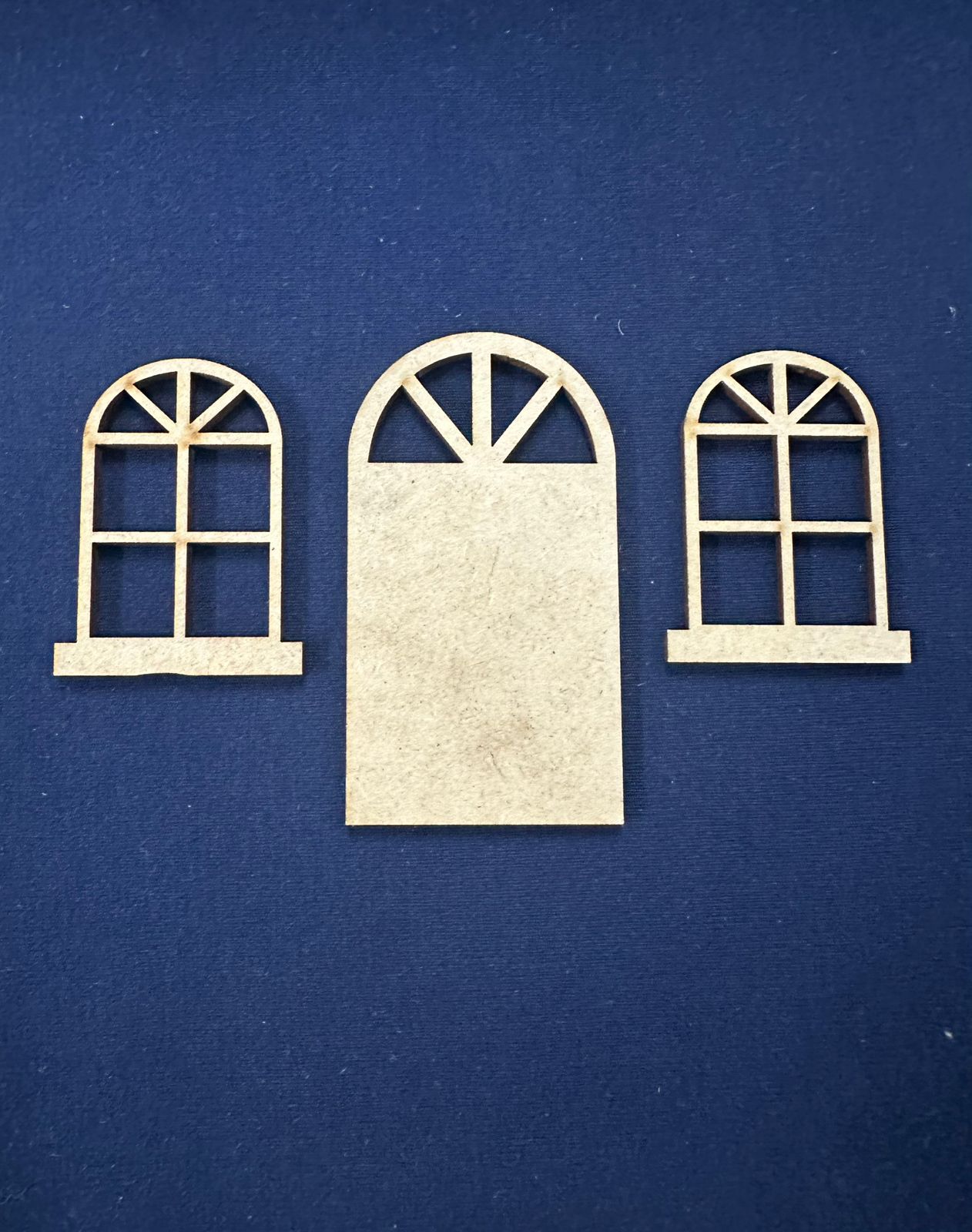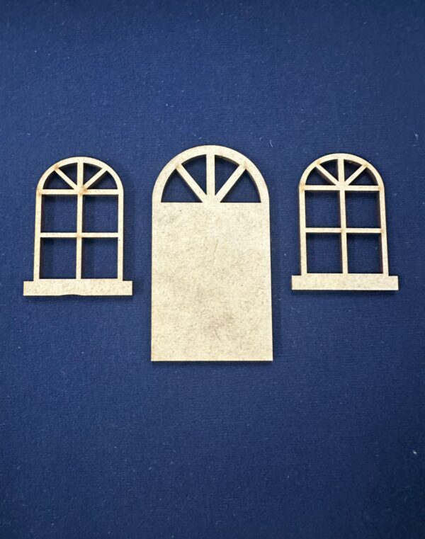 Cortes em MDF de 3 mm de espessura. Porta – 8×4,5 Janela – 4×5,5 por unidade